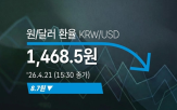 [외환] 원/달러 환율 8.7원 내린 1,468.5원(15:30 종가) 2026-04-21 15:32:04