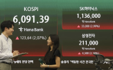 코스피가 미국과 이란 간 2차 종전 협상 기대감에 상승 마감한 15일 오후 서울 중구 하나은행 딜링룸 전광판에 코스피 종가가 표시되고 있다. 이날 코스피는 전 거래일 대비 123.64포인트(2.07%) 상승한 6091.39, 코스닥은 30.55포인트(2.72%) 오른 1152.43로 장을 마쳤다. 서울 외환시장에서 원·달러 환율은 전...