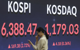 코스피 종가가 사상 최고치를 경신한 21일 오후 서울 여의도 한국거래소 전광판에 종가가 표시되어 있다. 이날 코스피는 전 거래일 대비 169.38포인트(2.72%) 오른 6388.47, 코스닥은 4.18포인트(0.36%) 오른 1179.03에 장을 마쳤다. 삼성전자는 전일대비 4500원(2.10%) 오른 219,000원, SK하이닉스는 33,000원(2.99%) 오른...