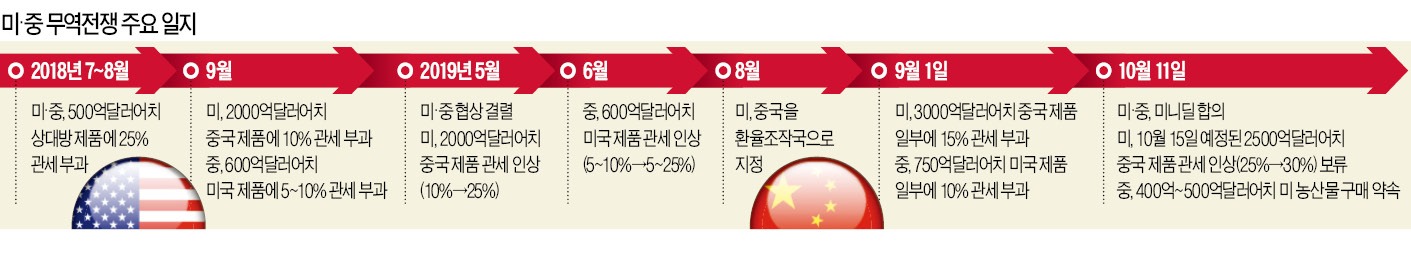 미국과 중국이 무역전쟁 15개월 만에 ‘미니 딜(부분 합의)’을 통해 휴전했다. 중국이 미국 농산물 400억~500억달러어치를 구매하고, 미국은 15일로 예정된 2500억달러어치 중국산 제품의 관세 인상(25%→30%)을 보류하기로 한 게 핵심이다.