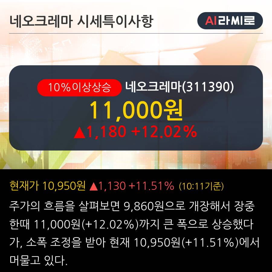 12월 13일 키움증권의 서혜원 애널리스트는 네오크레마에 대해 "네오크레마는 고순도, 유기농 갈락토올리고당 생산에 경쟁력을 보유한 건기식 소재 기업으로 종근당, 매일유업 등 국내외 건강기능식품 생산기업을 고객사로 보유하고 있다. 2019년 실적은 전년 대비 감소할 것으로 예상되지만, 2020년 동사가 생산하는 완제품 판매 본격화, 신규 거래선 확대에 따른 실적 회복이 기대된다." 이라고 분석했다.