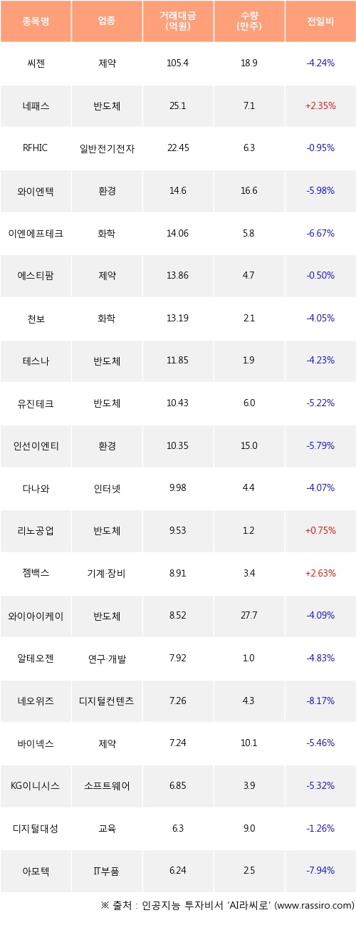 네패스, 리노공업, 젬백스 등은 전일 대비 주가가 상승했고, 씨젠, RFHIC, 와이엔텍 등은 주가가 하락했다.