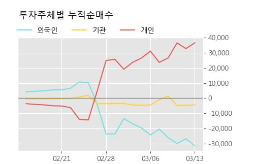 지난 한달을 기준으로 보면 외국인이 3.2만주를 순매도했고, 기관도 4,438주를 순매도했지만, 개인은 오히려 3.7만주를 순매수했다. 같은 기간 개인의 거래비중이 90.4%로 가장 높아, 주요 거래 주체로 참여했음을 알 수 있다.