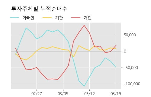 지난 한달을 기준으로 보면 외국인이 4.1만주를 순매도했고, 기관도 2,425주를 순매도했지만, 개인은 오히려 1.8만주를 순매수했다. 같은 기간 이 종목의 거래비중은 외국인과 개인이 각각 12.7%, 82.3%로 비중이 높다.
