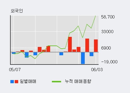 한편 기관은 이 종목에 대해서 최근 10일 연속 6.2만주 순매도를 하고 있다. 더욱이 전일 외국인이 대량 순매수를 하고 있어 투자자들의 관심이 집중되고 있다.