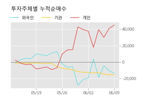 지난 한달을 기준으로 보면 외국인이 1.1만주를 순매도했고, 기관도 1.7만주를 순매도했지만, 개인은 오히려 3.8만주를 순매수했다. 같은 기간 개인의 거래비중이 91.4%로 가장 높아, 주요 거래 주체로 참여했음을 알 수 있다.