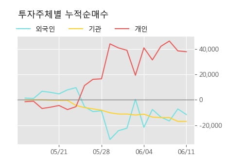 지난 한달을 기준으로 보면 외국인이 8,418주를 순매도했고, 기관도 1.8만주를 순매도했지만, 개인은 오히려 3.7만주를 순매수했다. 같은 기간 개인의 거래비중이 91.3%로 가장 높아, 주요 거래 주체로 참여했음을 알 수 있다.