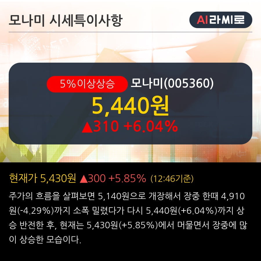 최근 이 종목의 차트에서 최근 5일 매물대 돌파, 주가 5MA 상향돌파 등의 특이사항이 발생했다.