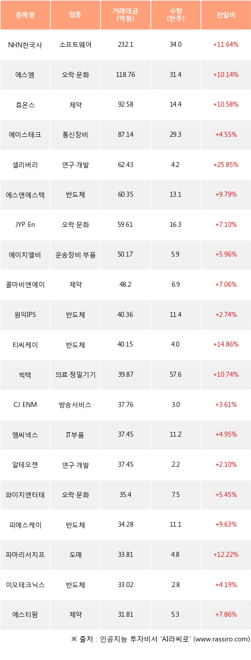 이날 외국인 투자자가 순매수한 종목들 중에 NHN한국사이버결제, 에스엠, 휴온스 등은 전일 대비 주가가 상승했다.