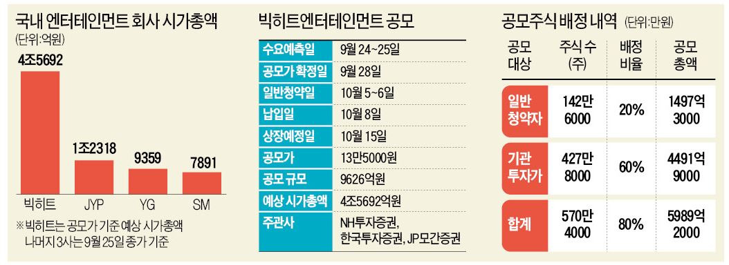 올 하반기 기업공개(IPO) 시장의 대어로 꼽히는 빅히트엔터테인먼트의 청약이 5일 시작됐다. 빅히트는 세계적 그룹 방탄소년단(BTS)의 소속사다. BTS의 팬 클럽인 '아미'를 중심으로 "1주라도 사서 소장하겠다"는 움직임도 나온다. 아미는 물론, 일반 투자자까지 뛰어들 경우 100조원에 육박하는 자금이 몰릴 것으로 보인다.
