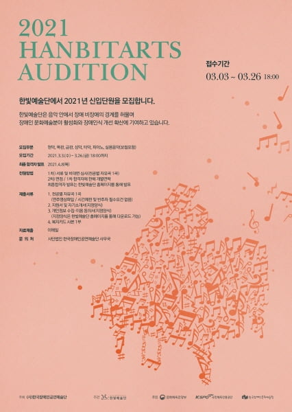 시각장애인 전문예술단체 한빛예술단이 2021년 신입 단원을 오는 3월 26까지 모집한다.