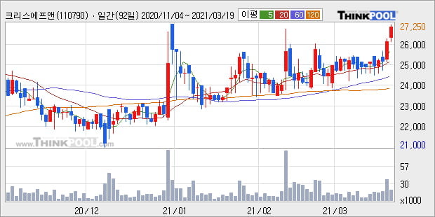 [그래프]크리스에프앤씨 외국인/기관 매매동향