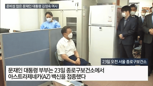 녹화 방송으로 공개된 장면에서 간호사는 주사기로 백신을 추출한 뒤 가림막 뒤로 갔다가 다시 나와 문 대통령에게 백신을 접종했다.