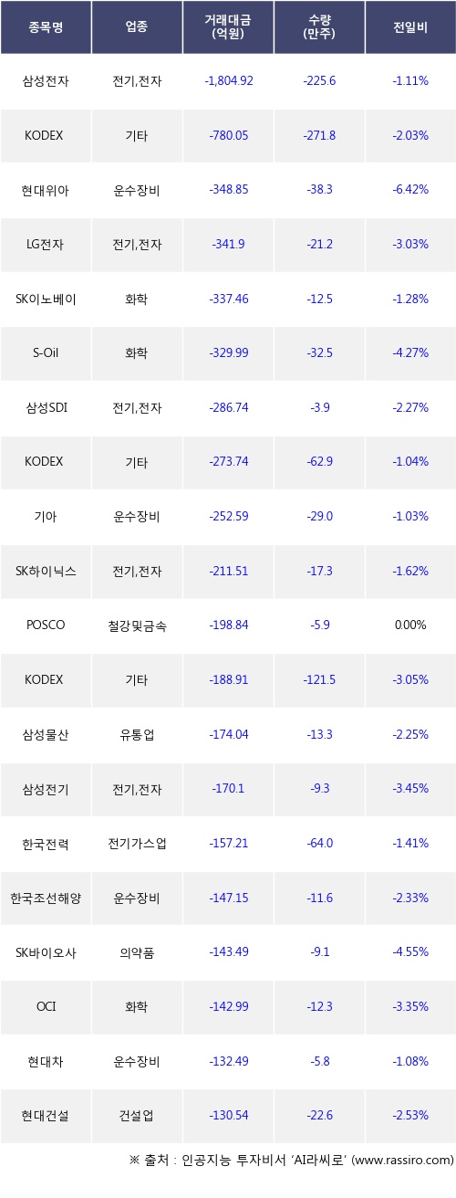 [07월08일]거래소 기관 순매도 상위 종목
