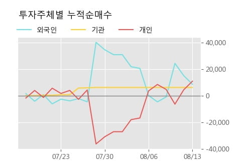 지난 한달을 기준으로 보면 외국인이 8,552주를 순매수했고, 기관도 6,159주를 순매수했다. 개인들 또한 1.1만주를 사들인 것으로 집계됐다. 같은 기간 이 종목의 거래비중은 외국인과 개인이 각각 10.2%, 88.6%로 비중이 높다.