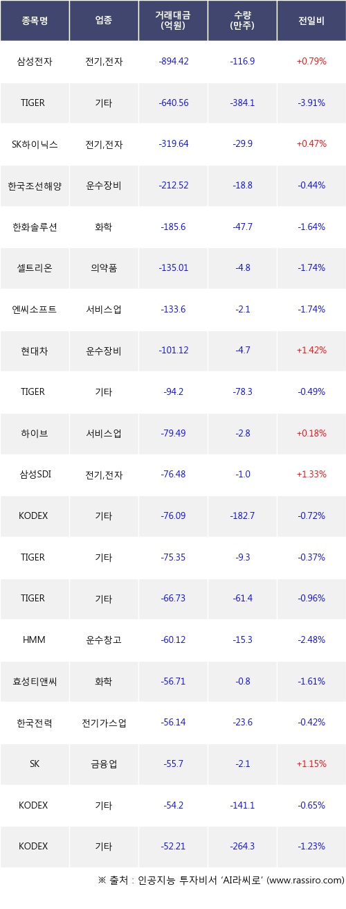 [09월03일]거래소 기관 순매도 상위 종목