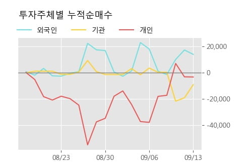 지난 한달을 기준으로 보면 외국인이 1.4만주를 순매수한 반면, 기관은 9,130주를 순매도했고, 개인들도 3,235주를 순매도한 것으로 집계됐다. 같은 기간 개인의 거래비중이 95.4%로 가장 높아, 주요 거래 주체로 참여했음을 알 수 있다.