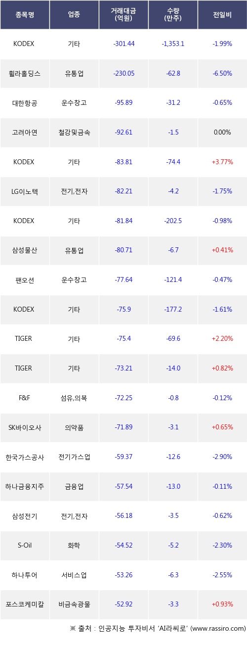 [10월19일]거래소 기관 순매도 상위 종목