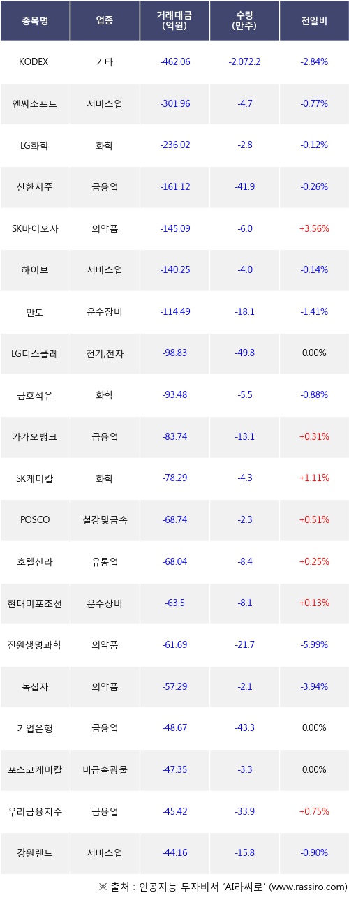 [11월02일]거래소 외국인 순매도 상위 종목