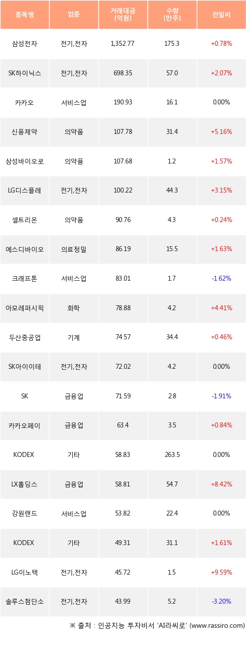 삼성전자, SK하이닉스, 신풍제약 등은 전일 대비 주가가 상승했고, 크래프톤, SK, 솔루스첨단소재 등은 주가가 하락했다.