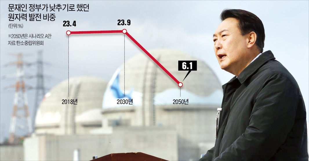 윤석열 대통령 당선인은 15일 경북 울진 산불 피해 이재민 간담회에서 “(신규 원전 건설 재개는) 대선 공약으로 발표한 것이니 새 정부가 출범하면 속도를 내겠다”며 이같이 말했다. 윤 당선인은 대선 과정에서 ‘탈원전 백지화, 원전 최강국 건설’이라는 간명한 메시지로 에너지 정책의 대전환을 예고했다. 원전산업을 복원해 신재생과 원전의 조화를 꾀하겠다는 구상이다. 지난 5년간의 탈원전 정책으로 무너져 내린 원전 생태계를 복원하고 탄소중립 시나리오를 다시 쓰는 일도 새 정부가 짊어진 무거운 숙제다.