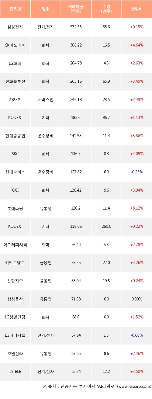 삼성전자, SK이노베이션, LG화학 등은 전일 대비 주가가 상승했고, 현대모비스, LG에너지솔루션 등은 주가가 하락했다.
