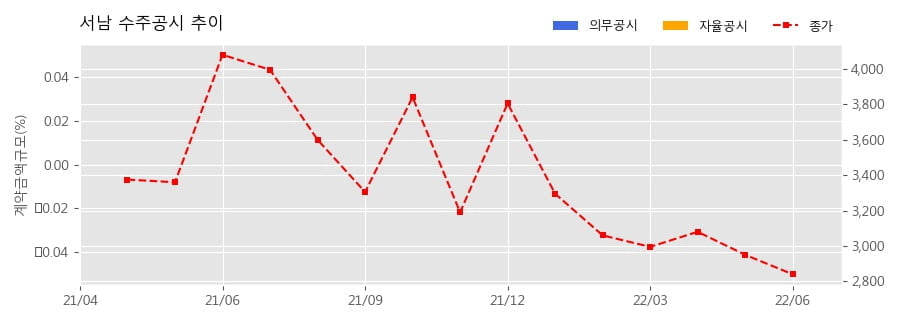 계약 상대방은 엘에스전선(주)구미이고, 계약금액은 35.4억원 규모로 최근 서남 매출액 11.4억원 대비 약 311.51 % 수준이다. 이번 계약의 기간은 2022년 06월 30일 부터 2022년 12월 05일까지로 약 5개월이다.