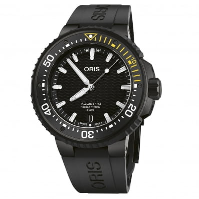 오리스 아퀴스프로 데이트 칼리버 400 시계는 포화 잠수를 하는 전문 잠수사가 사용하기에 적합한 시계로 1000m 방수가 가능하다. 5일 파워 리저브, 자성에 강하고 10년 보증 기간과 서비스 기간을 제공하는 자사 칼리버 400을 탑재하고 있다. 가격은 550만원.