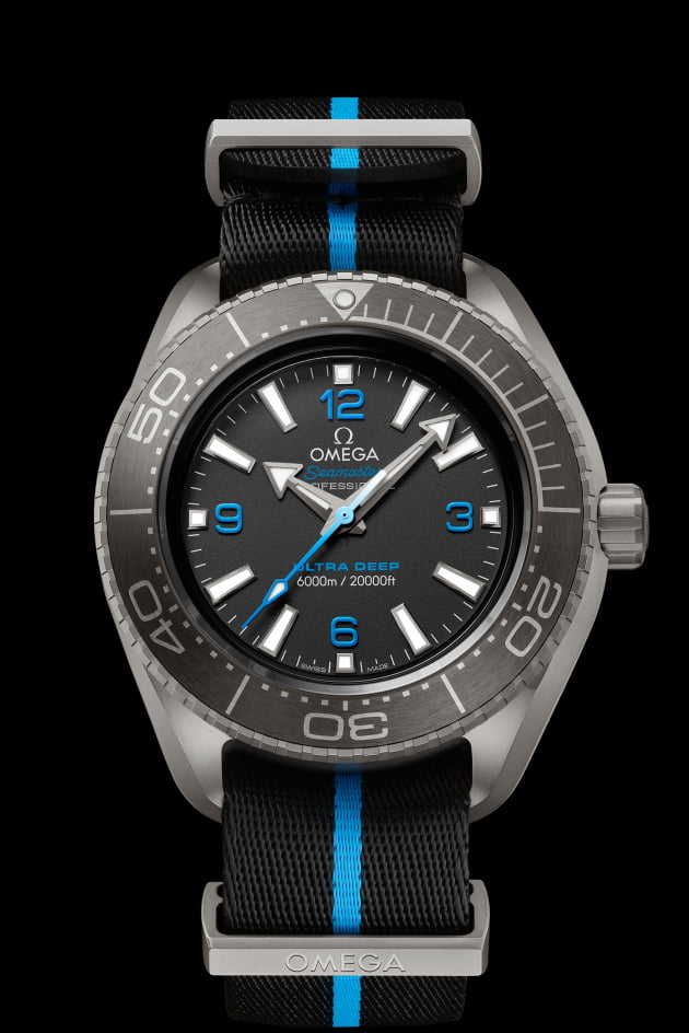 이 시계의 이름은 '오메가 씨마스터 플래닛 오션 6000M 코액시얼 마스터 크로노미터 45.5㎜ 울트라 딥(Ultra Deep)'이다. 2019년 10925미터 방수되는 파이브 딥스(Five Deeps)라는 시계로 세계 기록을 달성한 후 2022년 실제 착용하기 편한 시계로 소개했다. ISO 6425:2018의 포화 잠수 시계의 기준을 따르고 있고 실제 해양 조건에서 검수를 마친 6000m 방수 기능을 갖고 있다. 케이스는 5등급 티타늄으로 가볍고 폴리아미드 소재의 나토 스트랩을 제공하고 있다. 한국 판매 금액은 1590만원.