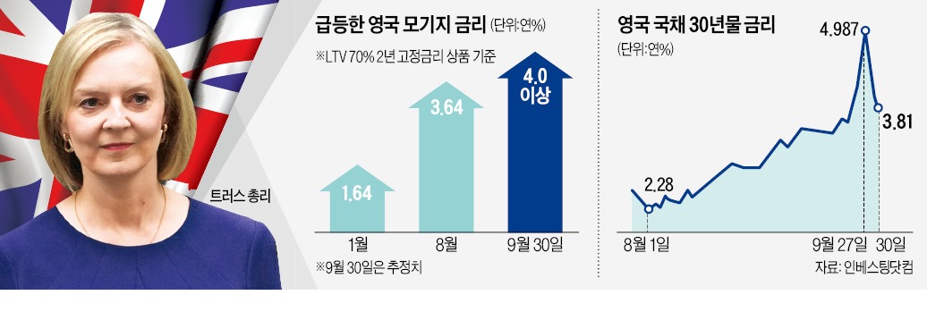지난달 26일 영국 최대 모기지 공급자인 로이드뱅킹그룹을 시작으로 버진머니, 스킵턴빌딩소사이어티 등이 대출 상품을 철회했다. 27일엔 HSBC 등이 신규 대출을 중단했다. FT는 “대형 금융회사보다 한발 앞서야 한다고 판단한 소규모 은행들의 ‘패닉 중단(철회)’ 행렬이 더해졌다”고 전했다. 네이션와이드 등 일부 금융회사는 모기지 금리를 인상했다. 시장에선 이번 사태로 영국 집값이 최대 20% 폭락할 수 있다는 관측이 나온다.