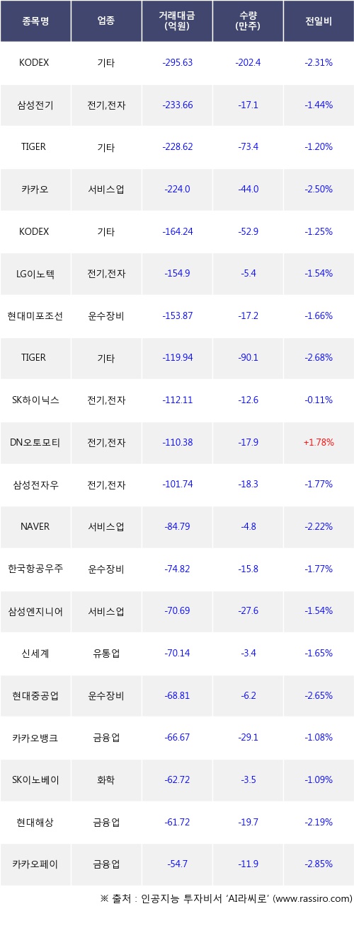 [11월10일]거래소 기관 순매도 상위 종목