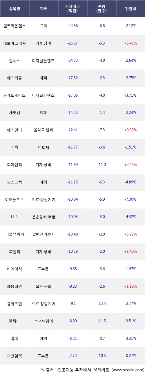 [11월25일]코스닥 기관 순매도 상위 종목