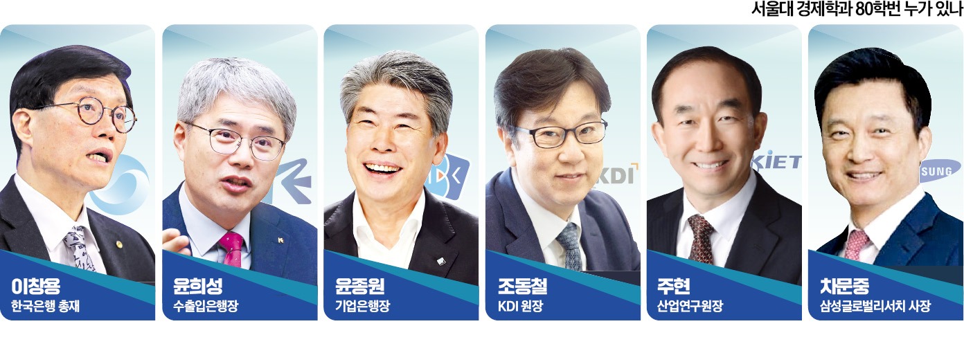 차문중 삼성글로벌리서치 사장과 주현 산업연구원장, 박종규 금융연구원장, 김현곤 국회미래연구원장, 김견 HMG경영연구원장, 고준형 포스코경영연구원장 등 주요 연구기관 수장들도 모두 서울대 경제학과 80학번이다.
