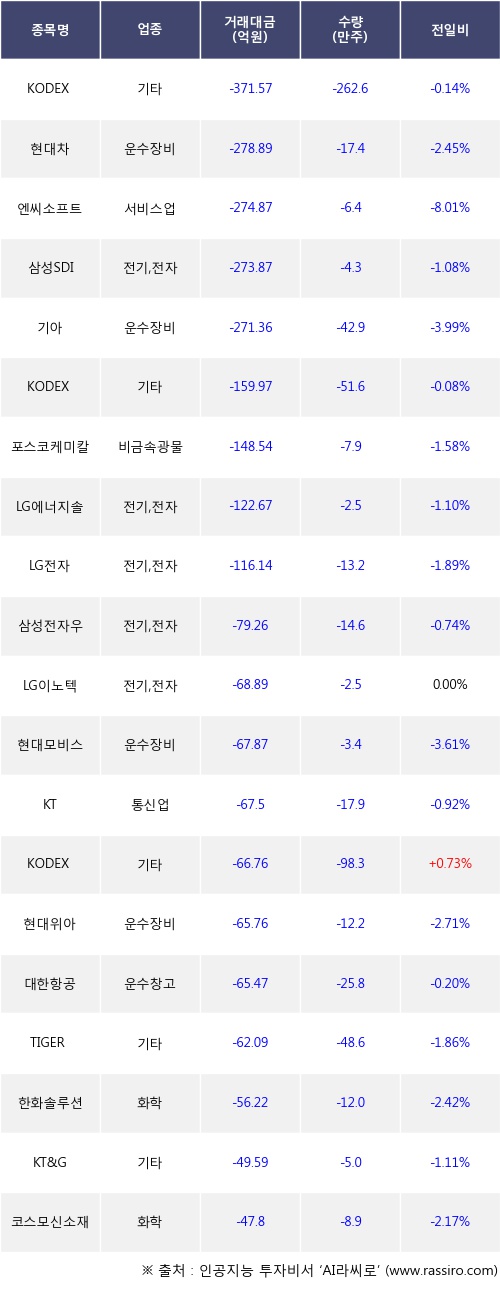[12월13일]거래소 기관 순매도 상위 종목
