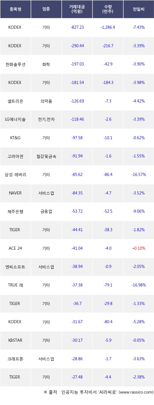 [12월23일]거래소 기관 순매도 상위 종목