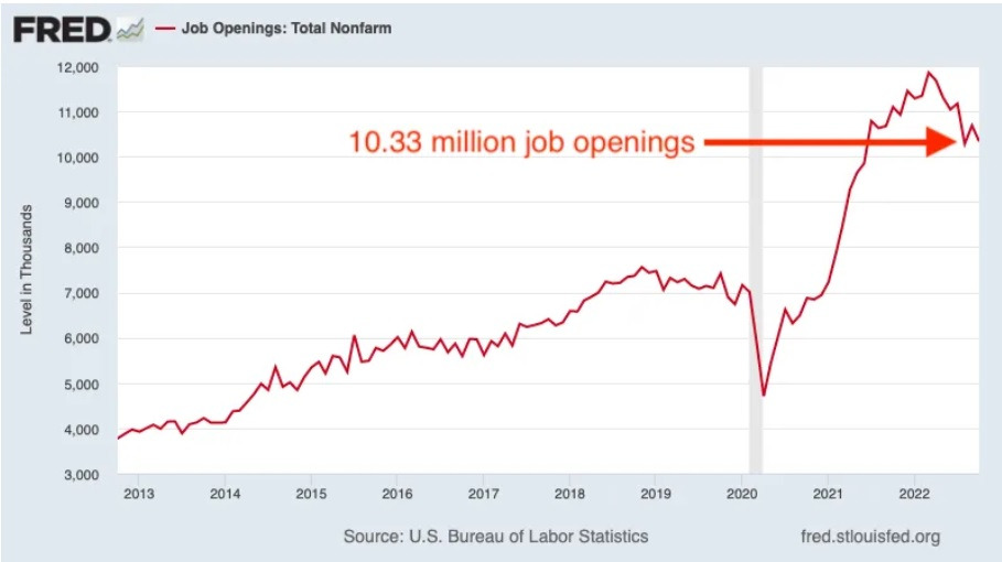 그런데 지금은 정반대 상황입니다. 미국 노동수요를 보여주는 대표적인 지표는 미국 기업들의 채용공고 수입니다. 올들어 1100만개를 넘었다가 조금씩 떨어지고 있지만 아직도 1000만개가 넘습니다. 반대로 구직수요는 그에 미치지 못합니다. 잉여 노동력을 보여주는 지표는 실업자 수입니다. 이 수치는 600만명 정도됩니다.