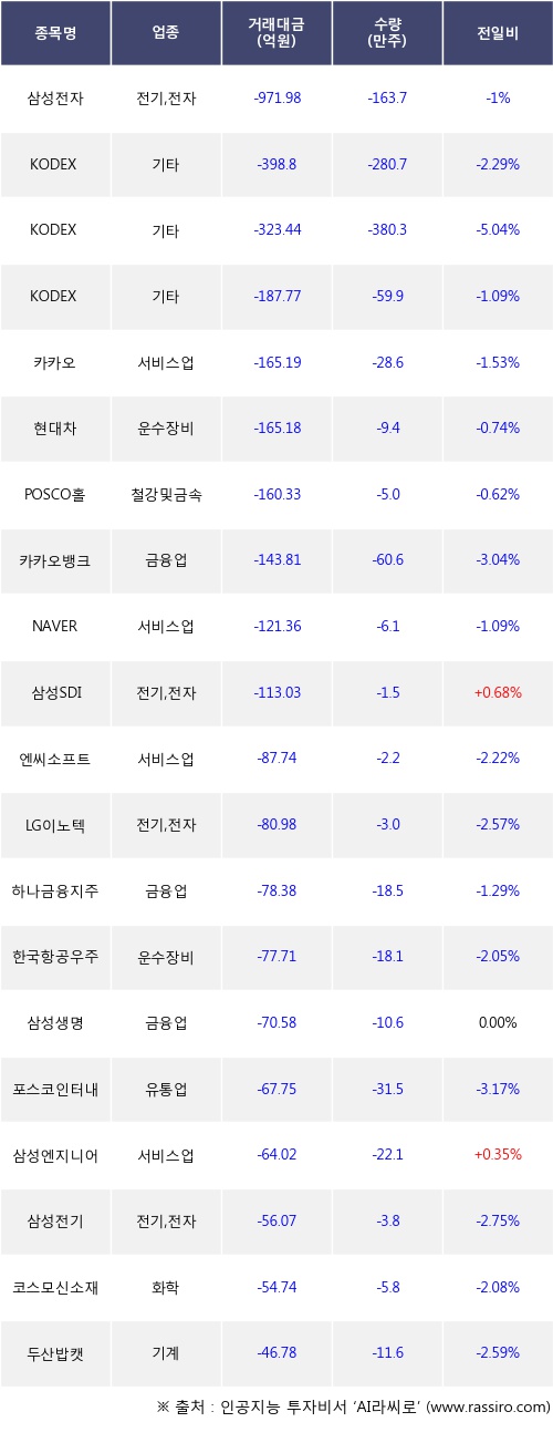 기관 투자자의 순매도 상위 20개 종목은 삼성전자, KODEX 레버리지, KODEX 코스닥150레버리지, KODEX 200, 카카오, 현대차, POSCO홀딩스, 카카오뱅크, NAVER, 삼성SDI등이다.