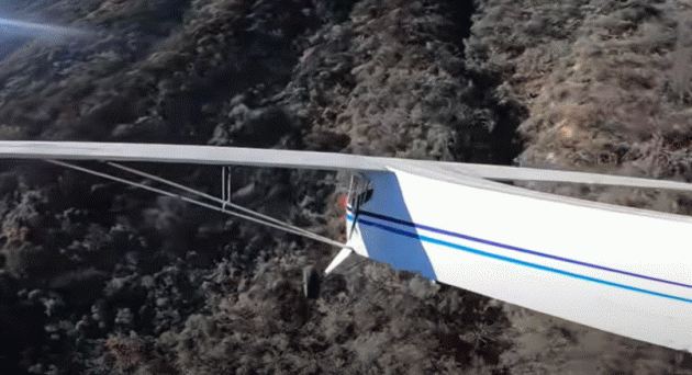 그는 셀카봉을 든 채 맨몸으로 하강하다 낙하산을 폈고, 조종사 없이 날던 비행기는 이륙 35분 만에 캘리포니아 로스 파드레스 국유림 한복판에 추락했다.