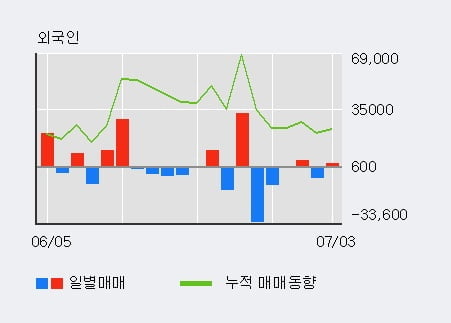 지난 한달을 기준으로 보면 외국인이 2.3만주를 순매수한 반면, 기관은 6.7만주를 순매도했고, 개인들도 7.9만주를 순매도한 것으로 집계됐다. 같은 기간 이 종목의 거래비중은 외국인과 개인이 각각 15.6%, 73.2%로 비중이 높다.