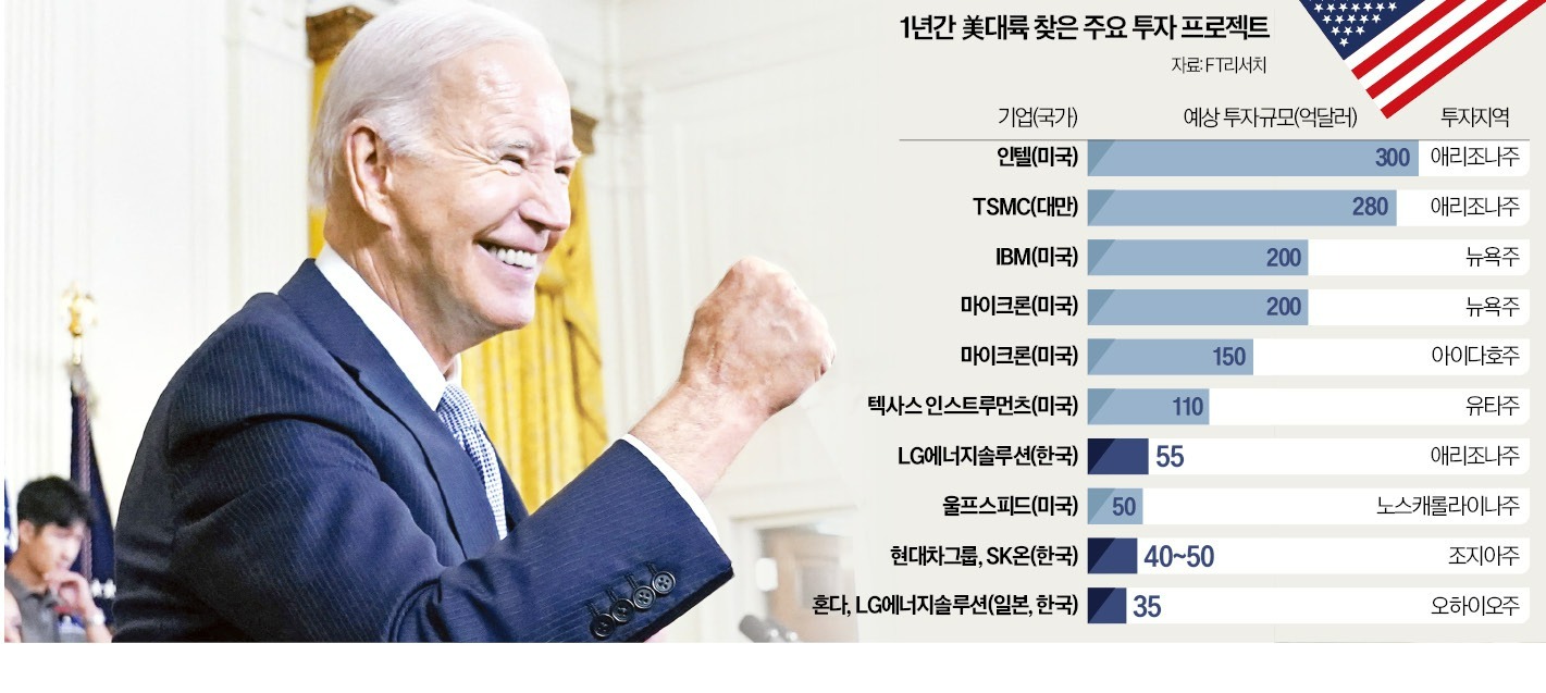 미국 제조업이 화려하게 부활하고 있다. 반도체, 전기차, 배터리, 태양광·풍력·수소 분야에서 2240억달러(약 301조원) 규모에 달하는 제조시설을 유치하는 데 성공했다. 조 바이든 행정부가 반도체지원법, 인플레이션 감축법(IRA)을 시행한 지 1년 만에 이룬 성과다. 10만 개의 일자리 창출 효과도 거둘 것이란 전망이다.