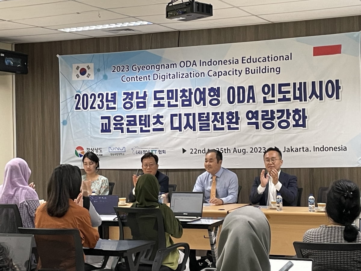 이번 프로젝트를 위해 경남 소재 교육정보화 국제개발협력(ODA) 사업 경험이 많은 경남ICT협회와 회원사 아라소프트사, 그리고 경남국제개발협력센터가 힘을 합쳤다. 인도네시아 교육콘텐츠 디지털전환 ODA사업에 현지에서는 자카르타 소재 UNSIA(아시아사이버대학교), UNAS(우나스대학교) 소속 교직원들에게 아라소프트의 epub3.0 저작도구인 나모오서를 교육했다.