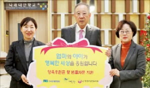 류진 한국경제인협회 회장(가운데)은 19일 서울 대신동에 있는 미혼모 출산지원시설 애란원을 찾아 양육지원금과 육아용품을 전달했다.류 회장은 이 자리에서 ‘한 아이를 키우는 데 온 마을이 필요하다’는 아프리카 속담을 인용하며 “어려운 여건 속에서도 출산과 양육이라는 쉽지 않은 선택을 한 미혼모들의 용기와 책임감에 격려와 응원을 보낸다”며 “미래 세대를 키워내는 무거운 짐을 미혼모들이 홀로 짊어지는 일이 없도록 경제계가 함께할 것”이라고 말했다.