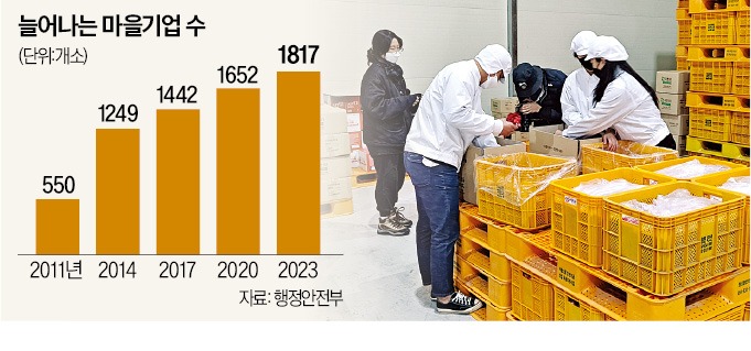 전국 마을기업 수는 작년 말 기준 1817곳이다. 사업을 처음 시작한 2011년(550곳) 대비 3배 넘게 늘었다. 정부는 당초 마을기업을 3500곳까지 늘릴 계획이었다. 문재인 정부 시절인 2021년 정부가 발표한 ‘마을기업 활성화를 위한 발전 방안’은 2030년까지 마을기업 지정 목표를 3500곳으로 제시했다.