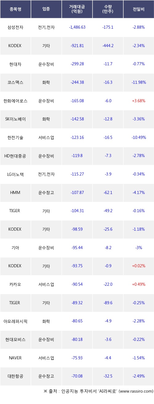 [07월19일]거래소 기관 순매도 상위 종목
