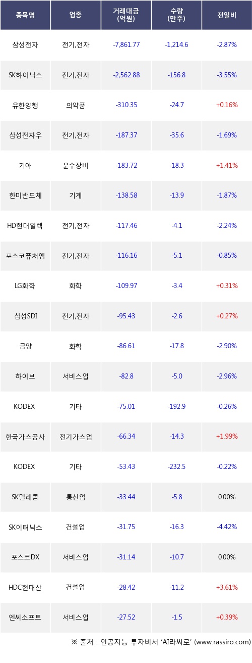 [09월13일]거래소 외국인 순매도 상위 종목