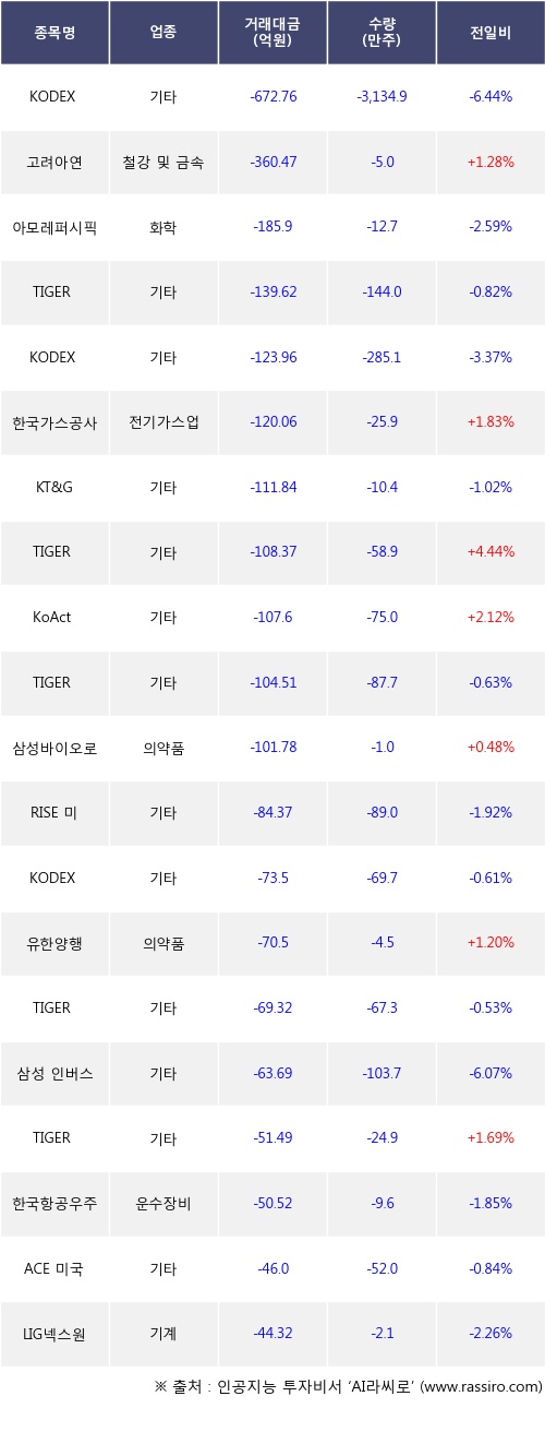 [09월26일]거래소 기관 순매도 상위 종목