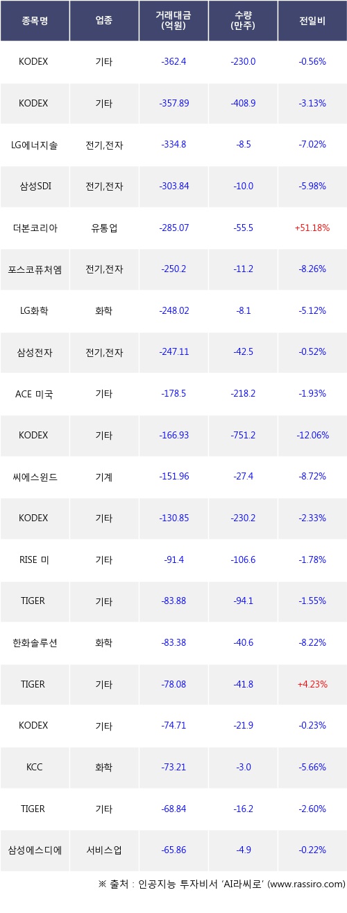 [11월06일]거래소 기관 순매도 상위 종목