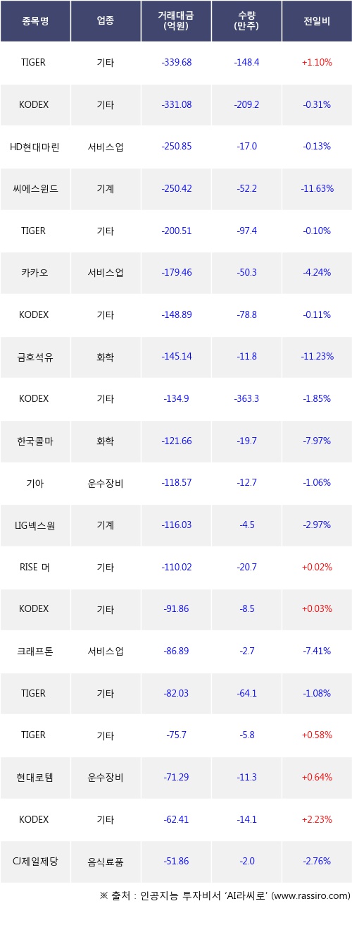 [11월08일]거래소 기관 순매도 상위 종목