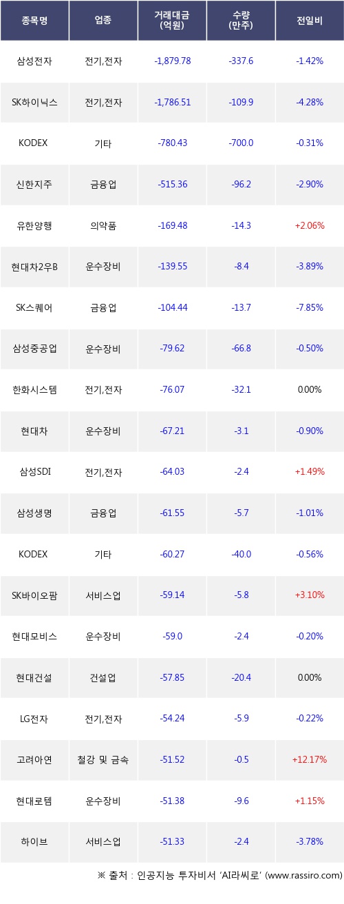 [11월28일]거래소 외국인 순매도 상위 종목