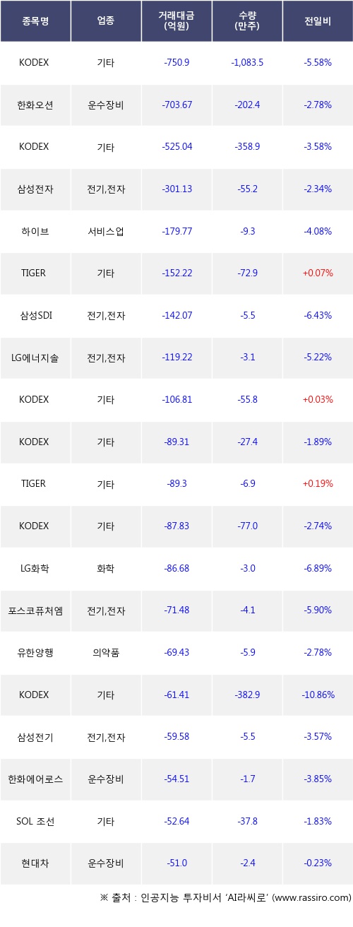 [11월29일]거래소 기관 순매도 상위 종목